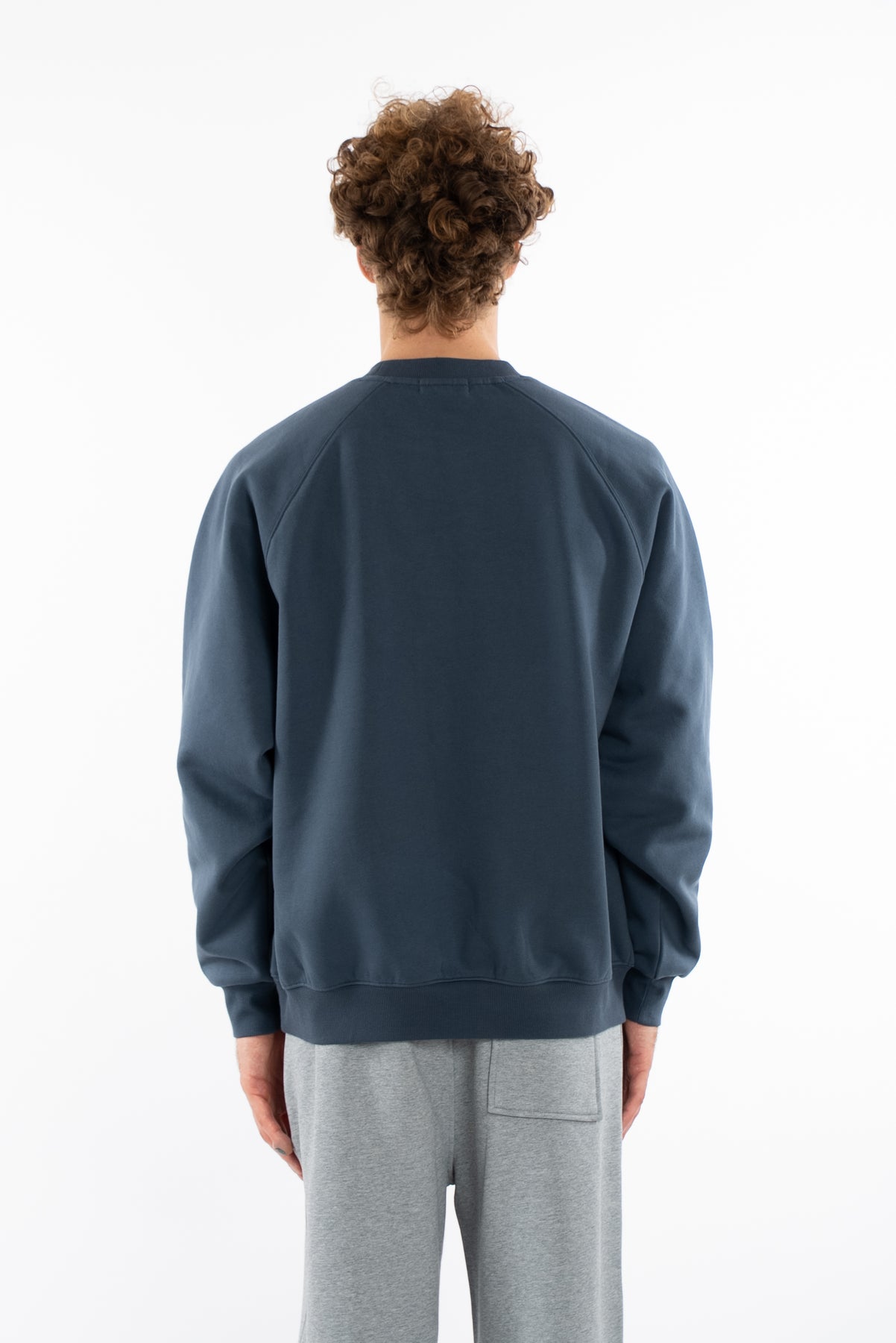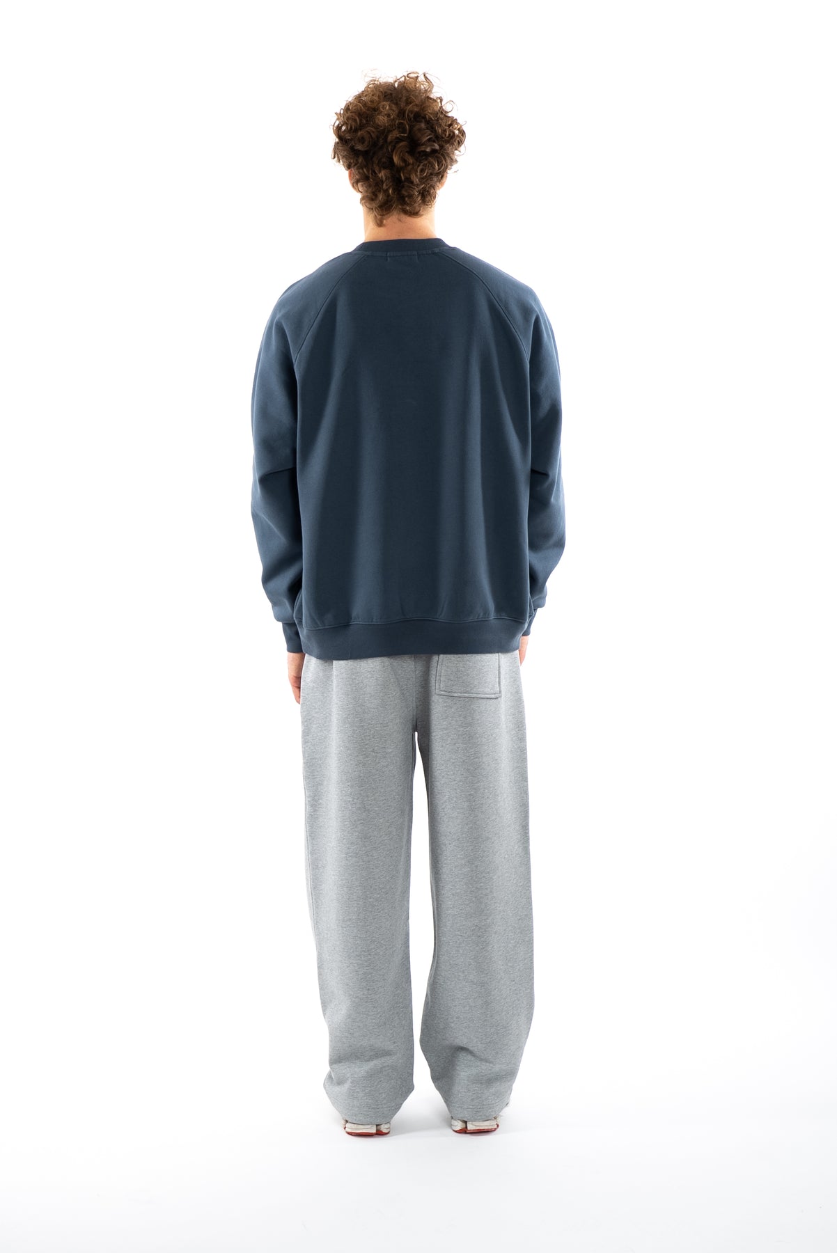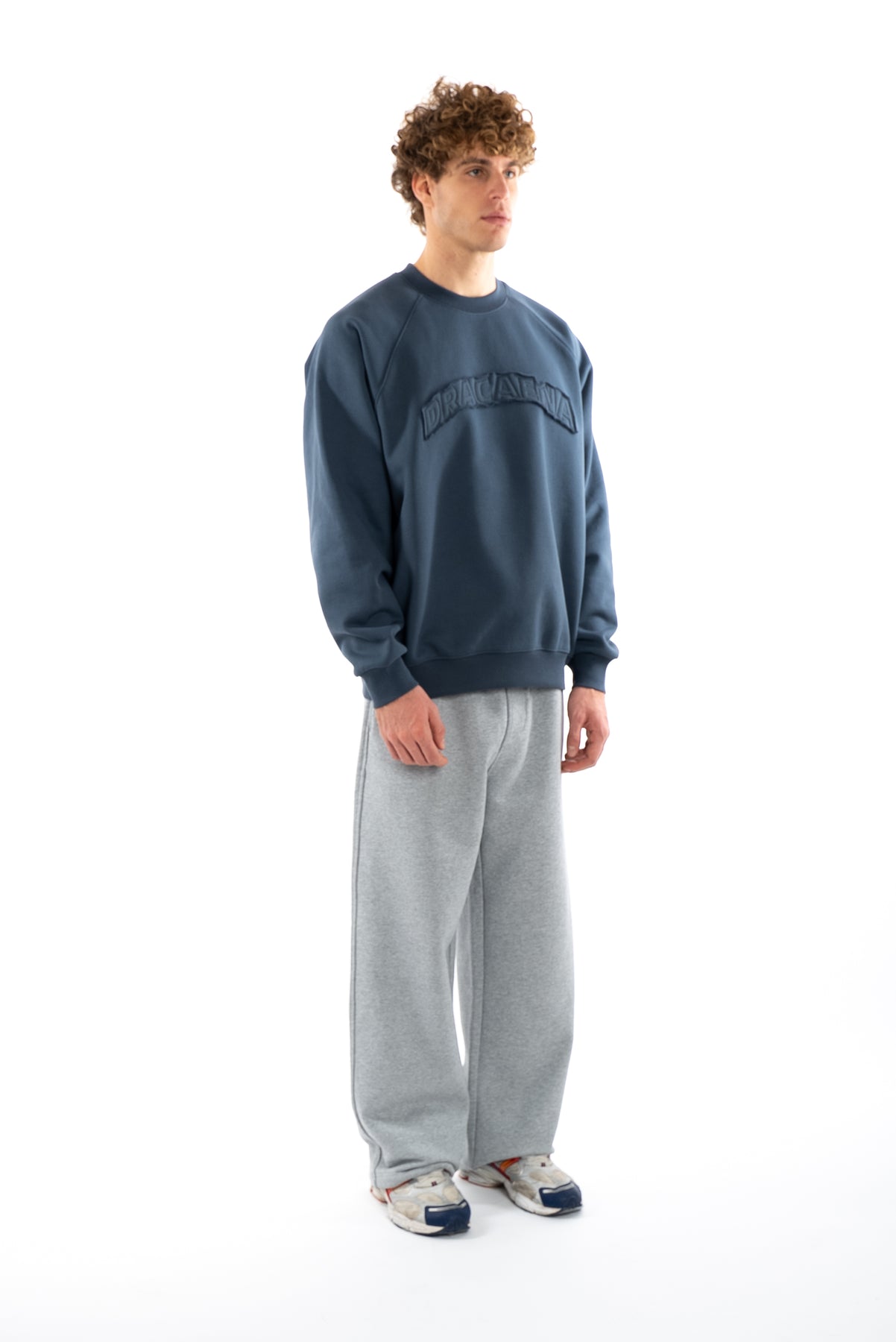 سويت شيرت بلون أزرق غامق بتصميم سادة، مصنوع بقماش ناعم ومريح مع أكمام طويلة وقَصّة واسعة مناسبة للاستخدام اليومي. يتميّز بحافة وأساور مطاطية لمظهر بسيط يناسب الإطلالات الكاجوال والشتوية.